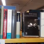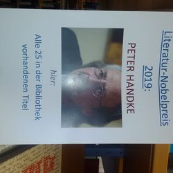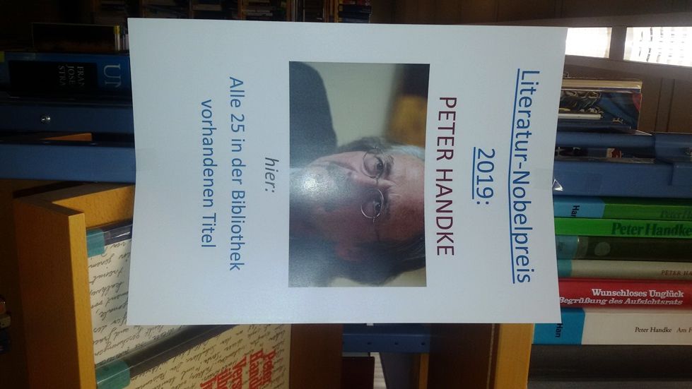 In einer großen Ausstellung können alle Titel, die in unserer Bibliothek von Peter Handke vorhanden sind (immerhin 26 Stück) besichtigt, gelesen und natürlich auch ausgeliehen werden.