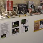 Eine Stellwand neben der Vitrine ergänzt die Ausstellung mit diversen Zeitungsartikeln, die zum 90. Geburtstag erschienen sind.