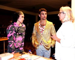 Bei der Maske habe ich als begeisterter Fan von RuPaul‘s Drag Race ganz dezidierte Vorstellungen: laut und bunt und viel! Den „Schminkies“ fällt es zunächst etwas schwer, so radikal zu arbeiten. Aber nach einem rigorosen Verbot von allen natürlichen Braun-rosa-Tönen kommen wir zum Ziel: