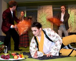 Wir sind in Illyrien (die Gegend um das heutige Triest), wo alles ein wenig entspannter ist. „Illyrien? Hallo?! Und was mach' ich hier?“, fragt die an diesem unbekannten Gestade gestrandete Viola. Nun, was man in einer Shakespearekömödie halt so macht. Frau verkleidet sich erst einmal als Mann (War zu Shakespeares Zeiten natürlich doppelt so lustig, da ein als Mädchen kostümierter junger Mann sich als junger Mann (!) verkleidete), verliebt sich hoffnungslos in den schönen Herzog Orsino, der wiederum hoffnungslos in die schöne, sich aber in tiefer Trauer um Vater und Bruder verlierende Gräfin Olivia verliebt ist, die sich wiederum auf den ersten Blick in den Liebesboten (besagte Viola, die sich nun Cesario nennt) verliebt. Wie man sieht, sind die Schlüsselworte „wiederum“ und „sich verliebt“. Ein Glück, dass Shakespeare noch den Zwillingsbruder Sebastian für uns parat hat, der zwar Antonios Herz bricht, aber durch sein unerwartetes Auftauchen in Illyrien letztendlich dann dafür sorgt, dass die Liebesgleichung aufgeht.