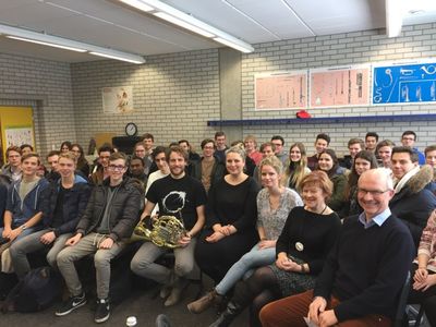 Bei der Frage, was man denn später einmal machen wolle, bekommen Jugendliche oft zu hören „Was macht dir denn Spaß?“. Aufgrund von Hobbys und Tätigkeiten, die einem Freude bereiten, einen Beruf oder ein Studium zu wählen, erscheint durchaus sinnvoll. Doch dass ein normales Hobby nicht immer ausreicht, um einer Beschäftigung erfolgreich nachgehen zu können, zeigte einmal mehr der Besuch des Orchestermusikers Christian Loferer (Hornist an der Bayerischen Staatsoper München) und der weltweit auftretenden Sopranistin Okka von der Damerau am 23. Januar 2017 am Anne-Frank-Gymnasium Erding.