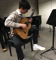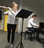 So begeisterten Laura Varzari und Simon Bauer mit zwei Stücken für Querflöte und Klavier, Michael Kania bewies mit zwei Solostücken für Gitarre große musikalische Reife, Michael Schirmer bot gewohnt bravourös zwei anspruchsvolle Akkordeonstücke dar und erklärte nebenbei noch dem Publikum den Unterschied zwischen MII und MIII-Akkordeon. Roman Pirsig sang unter Begleitung von Simon Bauer gar einen im Rahmen eines Grundkursprojekts selber komponierten Blues-Song und berührte damit die Zuhörer. Musiklehrerin und Kursleiterin Frau Ettelt führte durch das Programm.