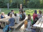 Nach der Pause haben wir die Gruppen getauscht, jetzt machten wir mit Anja im Grünen Klassenzimmer Experimente und die Jungs durften philosophieren. Danach wurden wir in kleine Gruppen eingeteilt, die wir am Anfang des Tages bereits gebildet hatten. Wir bekamen Arbeitsaufträge von Anja, wie zum Beispiel, warum man Schmetterlinge nicht am Flügel berühren darf. Die Antworten mussten wir auf einen Zettel aufschreiben und dann den anderen Kindern vorstellen. Am Ende haben wir noch alle gemeinsam ein Spiel gespielt.