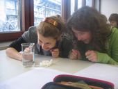 Außerdem untersuchten die Schülerinnen und Schüler in einer Doppelstunde das Phänomen der Dichte von Wasser und von Zuckerwasser. Mit einigen einfachen Hilfsmitteln wurden dann unterschiedliche Herangehensweisen zur Bestimmung des Zuckergehaltes von Cola entwickelt.