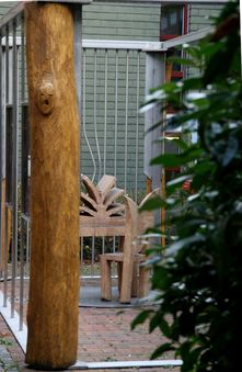 Der „Anne-Frank-Hof“, wie der innere Lichthof genannt wird, wurde als Raum der Ruhe für die Schülerinnen und Schülern der Oberstufe konzipiert, abgeschirmt vom Trubel der Aula und des Pausenhofes. Damit der Hof als Ruheraum genutzt werden kann, bedurfte es jedoch auch der Möglichkeit, sich niederzulassen. Diese Sitzgelegenheiten, die sich hervorragend in den Anne-Frank-Hof einfügen, wurden nun von Wolfgang Fritz unter Mitarbeit der Schülerinnen Eva Bachl, Janina Bitterlich und Jana Jöbstl angefertigt und am 8. Oktober 2010 zusammen mit unserer „Anne-Frank-Kastanie“ eingeweiht. Die Bänke und Stühle, angefertigt aus dem Stamm einer Esche – demselben Holz wie Tisch, Stuhl und Buch im Inneren der Skulptur – sind Unikate.