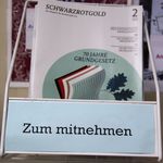 Ab 23.5.2019 (also dem 70. Jahrestag der Unterzeichnung des GGs) liegen 50 Sonderausgaben des Grundgesetzes (und inkludiert auch die Bayerische Verfassung) zum kostenlosen Mitnehmen bei der Ausstellung aus.