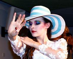 Bei der Maske habe ich als begeisterter Fan von RuPaul‘s Drag Race ganz dezidierte Vorstellungen: laut und bunt und viel! Den „Schminkies“ fällt es zunächst etwas schwer, so radikal zu arbeiten. Aber nach einem rigorosen Verbot von allen natürlichen Braun-rosa-Tönen kommen wir zum Ziel: