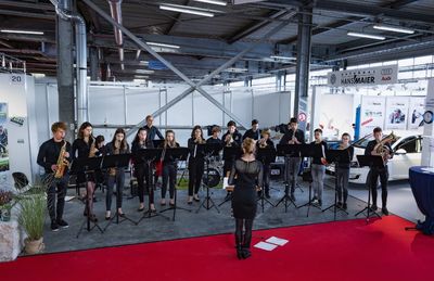 Am Donnerstag, den 10. 10. 2019, fuhr die Jazzband unseres Gymnasiums zusammen mit Frau Högemann im Morgengrauen zur diesjährigen „Berufsfit“ in der Winterdiensthalle am Münchner Flughafen. Doch unser Ziel war es nicht die Berufsmesse zu besichtigen, sondern die Eröffnung der Messe musikalisch zu umrahmen.