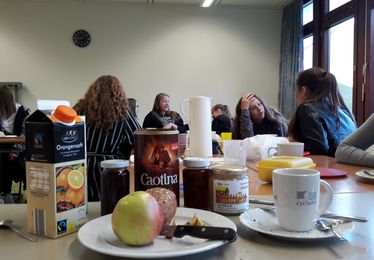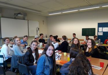 Gesundes Frühstück statt Deutsch, Erste-Hilfe-Kurs statt Mathematik, Faire Schokolade statt Geographie. Im Rahmen der „Woche der Gesundheit und Nachhaltigkeit“, einer Initiative des Bayerischen Staatsministeriums für Bildung und Kultus, fanden in der Woche vom 15.10.18 bis zum 19.10.18 zahlreiche Projekte zu diesen Themenbereichen statt, um bei den Schülern ein Bewusstsein für eine gesundheitsförderliche und nachhaltige Lebensweise zu schaffen. Dieses Jahr stand die Aktionswoche unter dem Motto „Schneller Kick oder gesunder Genuss?“, wobei der Fokus auf der Suchtprävention lag. In diesem Zusammenhang bot die Kulturschule Leipzig für die 7. und 9. Jahrgangsstufe des Anne-Frank-Gymnasiums das Theaterstück „Voll? – Voll daneben!“ an, das den Alkoholkonsum und seine Folgen thematisierte. Die 7. Klassen gingen zusammen mit den Power Peers, Schülern aus höheren Jahrgangsstufen, die am AFG Projekte zur Suchtprävention durchführen, in einer Nachbesprechung noch tiefer auf die Problematik ein: Wie entsteht eigentlich eine Sucht? Welche Auswirkungen hat Alkohol auf die Wahrnehmung? Und können auch Smartphones oder Fast Food süchtig machen? Das Thema „Gesundheit“ wurde auch in weiteren Projekten aufgegriffen. So wurde für die 6. Klassen ein Erste-Hilfe-Kurs angeboten. Die Zehntklässler beschäftigten sich im Biologieunterricht unter dem Motto „Slow versus fast food“ mit „Bewusster Ernährung“. Welche Rolle Bewegung für ein gesundes Leben spielt, konnten die 9. und 10. Jahrgangsstufe bei einer Veranstaltung von Artur Faiß erfahren, der Pilates als eine Möglichkeit für effektive Körperarbeit vorstellte. Getreu dem Motto „Schneller Kick oder nachhaltiger Genuss?“ stand jedoch nicht nur eine gesundheitsförderliche, sondern auch eine nachhaltige Lebensweise im Fokus der Aktionswoche. Den Schwerpunkt bildete dabei der „Fair Trade“-Tag am 17.10.18. Dieser begann mit einem gemeinsamen nachhaltigen und gesunden Klassenfrühstück. In Projekten zum fairen Umgang mit Genussmitteln setzten sich die Schüler darüber hinaus mit kritischen Fragen auseinander: Was hat eine Tafel Schokolade mit Kinderarbeit zu tun? Wie weit ist eine Jeans schon um die Welt gereist, bis sie in unserem Kleiderschrank landet? Und wer sind eigentlich die Gewinner und die Verlierer einer globalisierten Welt? Neben diesen Veranstaltungen drehte sich in der Aktionswoche auch der Unterricht immer wieder um die Themen „Nachhaltigkeit und Gesundheit“, um bei den Schülern ein echtes Bewusstsein für einen verantwortungsvollen Umgang mit sich selbst, ihren Mitmenschen und der Umwelt erlangen.
