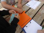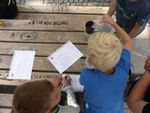 Nach der Pause haben wir die Gruppen getauscht, jetzt machten wir mit Anja im Grünen Klassenzimmer Experimente und die Jungs durften philosophieren. Danach wurden wir in kleine Gruppen eingeteilt, die wir am Anfang des Tages bereits gebildet hatten. Wir bekamen Arbeitsaufträge von Anja, wie zum Beispiel, warum man Schmetterlinge nicht am Flügel berühren darf. Die Antworten mussten wir auf einen Zettel aufschreiben und dann den anderen Kindern vorstellen. Am Ende haben wir noch alle gemeinsam ein Spiel gespielt.