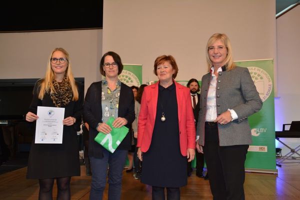 Nach der letztjährigen Prämierung des Anne-Frank-Gymnasiums durch den bayerischen Jagdverband mit einem Umweltpreis, dürfen wir uns dieses Schuljahr 2017/18 über eine weitere Auszeichnung im Bereich der Umwelterziehung freuen. Nun tragen wir auch den Titel "Umweltschule in Europa- Internationale Agenda-21 Schule". Im Rahmen einer gelungenen festlichen Veranstaltung, die am 10.11.17 vom LBV (Landesbund für Vogelschutz in Bayern e.V.) im Korbinian-Aigner-Gymnasium organisiert wurde, hob die bayerische Umweltministerin Ulrike Scharf die Arbeit mehrerer bayerischer Gymnasien hervor. Das Anne-Frank-Gymnasium konnte vor allem mit seiner Schulgarten-AG und einem im letzten Schuljahr gestarteten Projekt "Von der Mülltrennung zur Müllvermeidung" überzeugen.